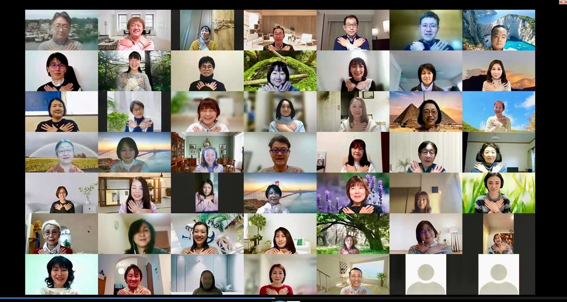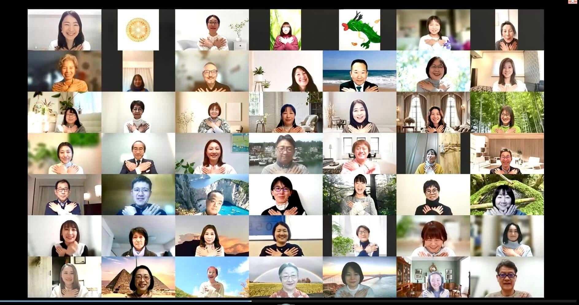 ゲスト、スピリチュアリスト、スクールから60名を超えるメンバーが同時にログインしまして、ゲストの皆様へ80件を超える個別セッションが進行、合間に10分間の全員でのトークセッションをはさんで、一人一人マンツーマンのリーディングセッションを4回行っていきました。リーディングが終わり認定式へと進んでいきました。